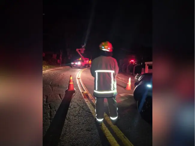 Um ônibus do transporte coletivo ficou coberto por fios de energia após romper uma fiação elétrica na madrugada desta quinta-feira (02), em Pomerode. A ocorrência