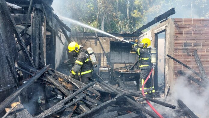 Uma residência de cerca de 120 metros quadrados foi completamente destruída por um incêndio na manhã desta quinta-feira (5), na Rua Silvio Romero, no bairro Fidélis, em Blumenau. O fogo começou por volta das 9h e mobilizou equipes do Corpo de Bombeiros para o combate às chamas.
