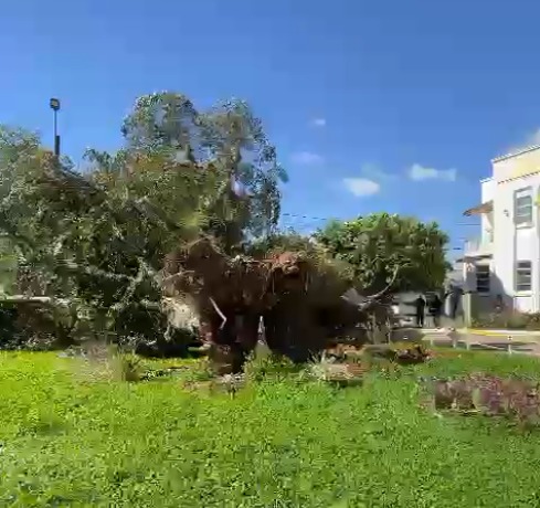 Uma árvore quase centenária localizada em frente à prefeitura de Gaspar não resistiu à força dos ventos provocados pelo ciclone extratropical que atinge a região. A figueira de 89 anos foi derrubada nesta quinta-feira (13), por volta das 11h, deixando a população surpresa. Um vídeo registrado no local mostra a imponente planta, com 12 metros de altura, caída no meio da praça, exibindo suas raízes ao ar livre.
