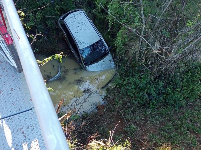 Carro sai da pista e cai em ribanceira em Indaial