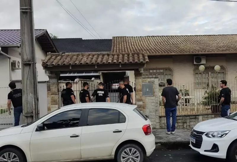 Imagens divulgadas pela Polícia Civil mostram os investigadores em frente à residência da família da jovem de Blumenau envolvida no caso, localizada no bairro Água Verde. Outra equipe realizou a operação em um restaurante nas proximidades da SC-421, em Pomerode, que tem ligações com os suspeitos.