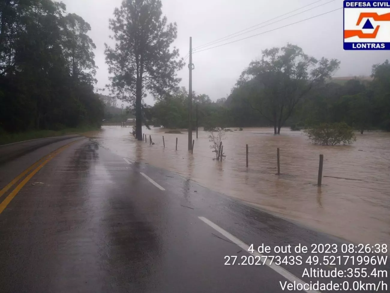 Em Lontras, a SC-110 está bloqueada, casas foram afetadas, e houve alagamentos devido ao volume de chuva. A Defesa Civil removeu uma árvore em Vitor Meireles e a estrada já está liberada. A tubulação em Lontras não suportou a chuva, causando alagamentos em diversos pontos da cidade.