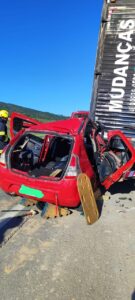 Um acidente de trânsito deixou feridos na tarde desta sexta-feira (05), na BR-470, no bairro Baú Baixo, em Gaspar. Um automóvel colidiu na traseira de