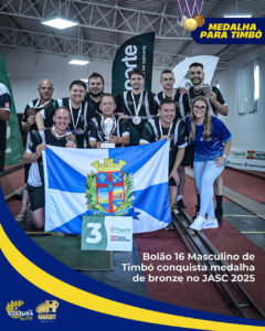 Tem nova medalha para Timbó nos Jogos Abertos de Santa Catarina! A equipe do Bolão 16 Masculino de Timbó esteve no pódio na premiação que