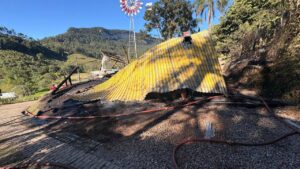Um incêndio destruiu completamente um chalé de madeira na localidade de Rio Bonito, em Rio dos Cedros, na tarde desta segunda-feira (20). Apesar da gravidade