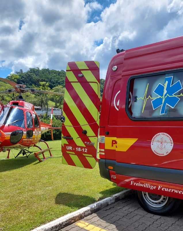 Os bombeiros prestaram os primeiros socorros no local e o helicóptero Arcanjo-03 foi acionado para transportar a vítima em estado grave ao Hospital Santa Isabel, em Blumenau. De acordo com informações fornecidas pelo hospital, o paciente está em condição estável, aguardando exames adicionais, sem risco imediato à vida.