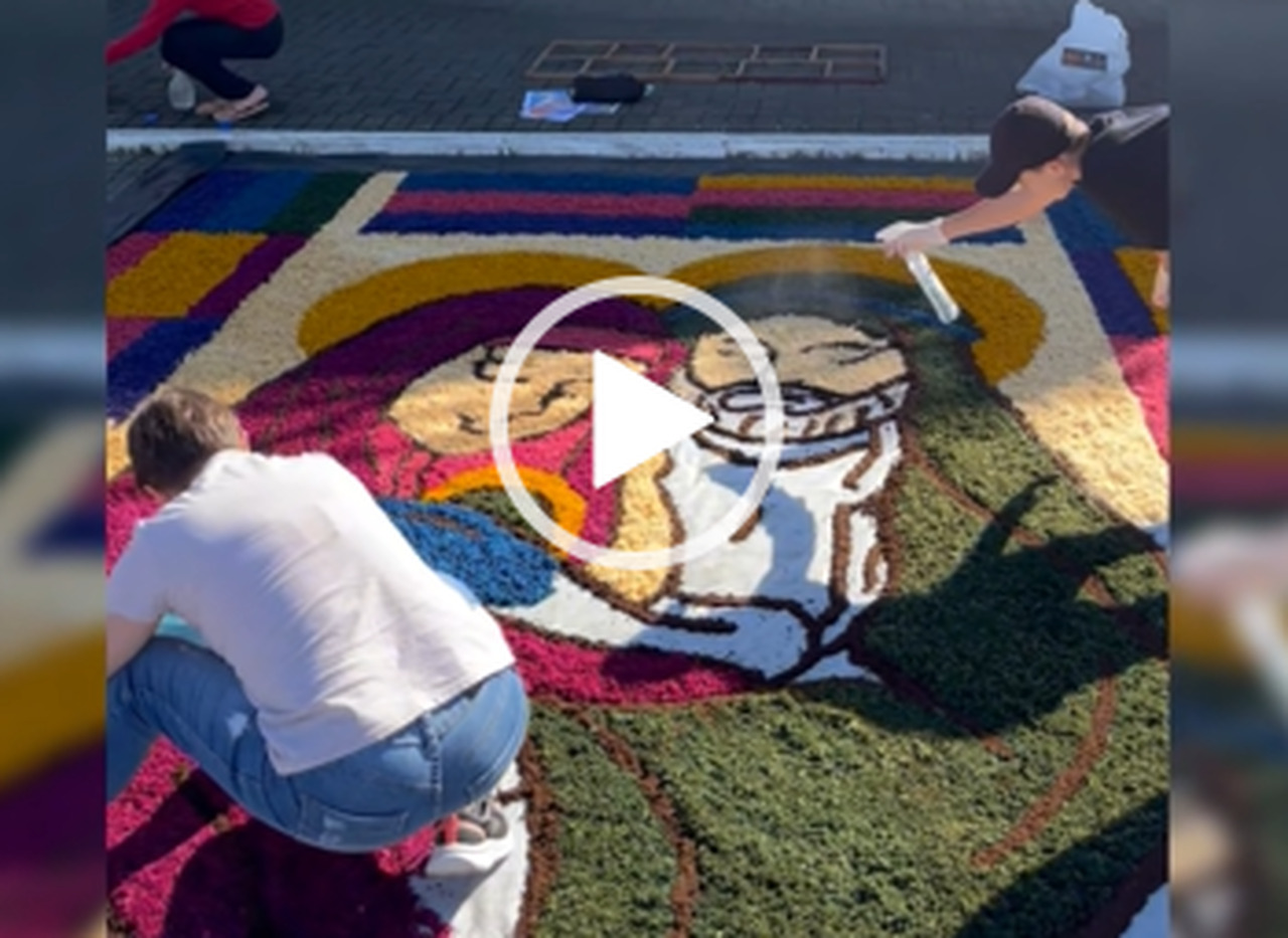 Cada detalhe foi cuidadosamente planejado e executado, refletindo temas religiosos e símbolos cristãos que remetem ao Corpo de Cristo, celebrado na festividade de Corpus Christi.