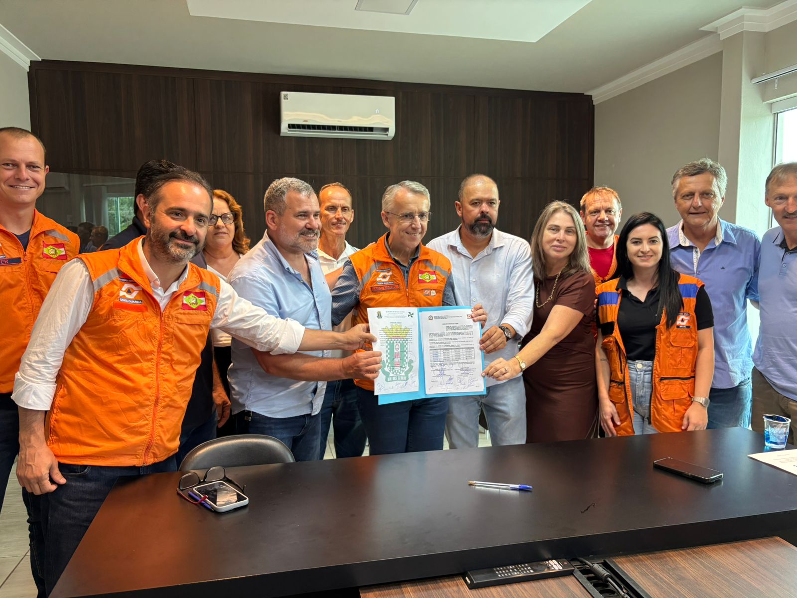 Uma demanda antiga para a prevenção de enchentes em Rio dos Cedros começa a sair do papel nesta segunda-feira (12). O secretário de Estado da Proteção e Defesa Civil, Mário Hildebrandt, assinou a ordem de serviço que autoriza o início imediato do desassoreamento que já acontece no município. A obra tem como objetivo principal a limpeza e o aumento da calha do rio, permitindo maior vazão da água e reduzindo os riscos de inundações em áreas urbanas e rurais historicamente afetadas.