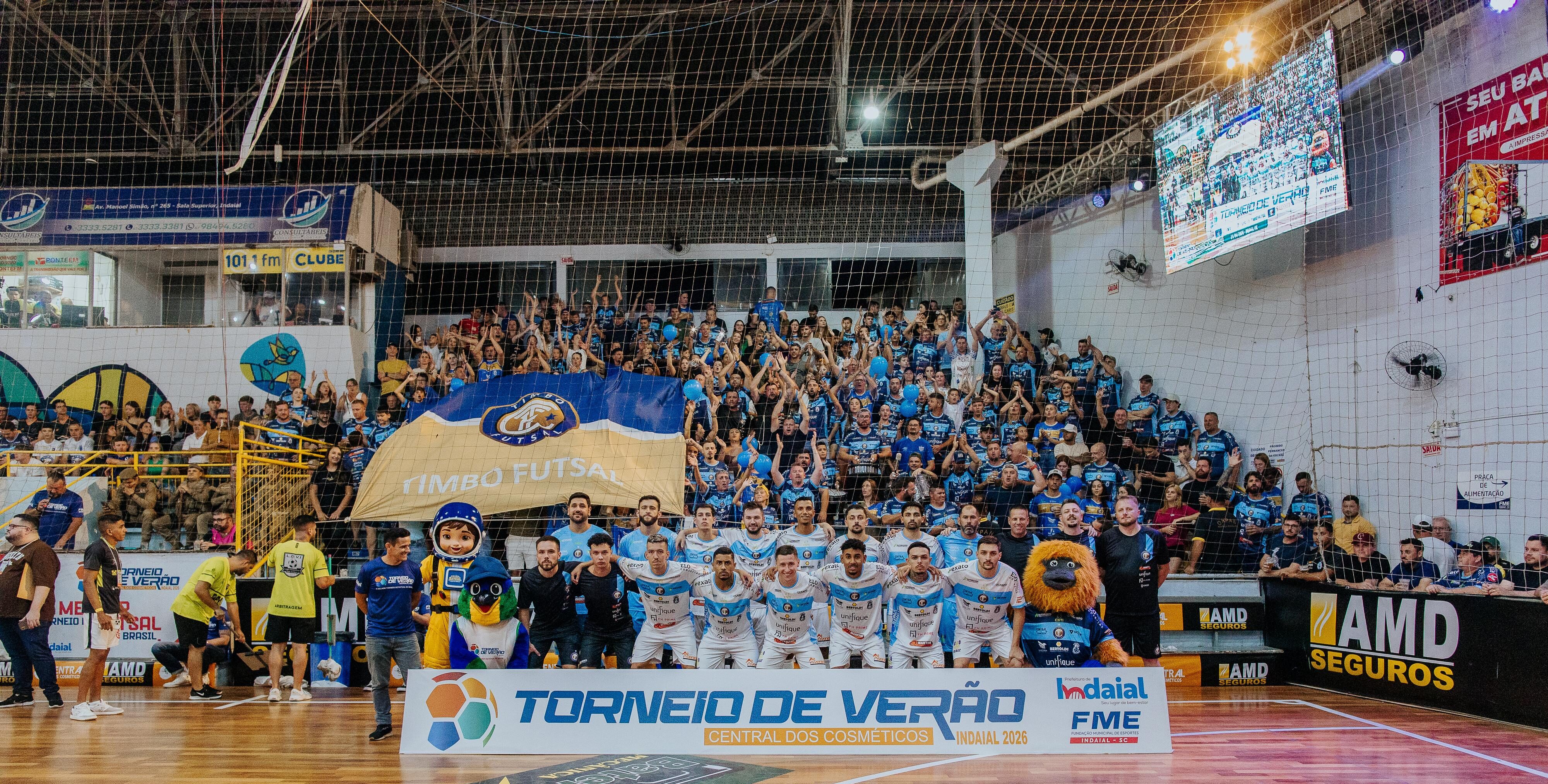 A noite desse sábado (31/01/2026) entrou para a história do futsal regional com a Super Final do 39º Torneio de Verão de Indaial “Central dos Cosméticos”. Em um jogo eletrizante no Ginásio Sérgio Luiz Petters, o MADETIM/FH Prime/Unifique/Timbó Futsal mostrou força e coração ao virar uma partida incrível contra o Cachorrões/Benvetex/Jamal Esfiharia Postes Indaial/Odonto Top. Depois de sair perdendo por 3 a 0, o time de Timbó reagiu, buscou o placar e fechou o confronto em 6 a 5, para delírio da torcida.