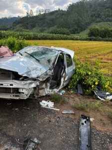 Um acidente de trânsito envolvendo dois veículos de passeio foi registrado na tarde desta quarta-feira (18), na rodovia SC-110, em Rodeio. A colisão ocorreu por volta das 16h55min, no bairro Rodeio 12.